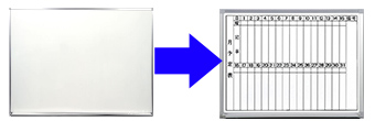 ホワイトボードプラザでは、ホワイトボードシートのご指定サイズへのカットや、予定表などの罫引き、文字入れも承ります。